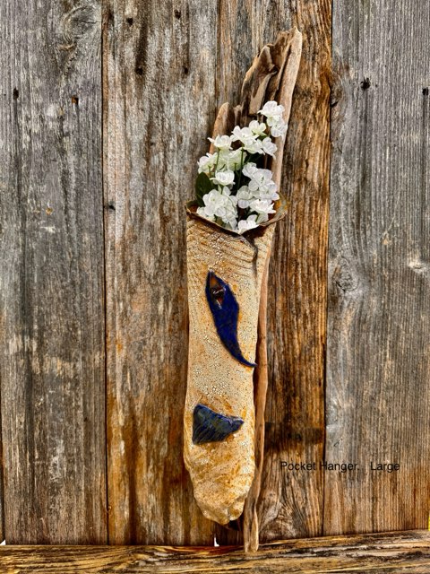 Please note: The Large Pocket Hanger shown is an example. Because each piece is individually created and hand-assembled, your hanger will have unique characteristics. The size, shape, and color of the driftwood will vary as they are hand-selected for each piece, and the ceramic pocket's texture and accent glazes will have subtle variations. This guarantees that the wall hanger you receive is a truly one-of-a-kind sculptural display.